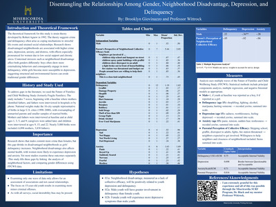 The association between gender and crime or delinquency, with males committing more crime and delinquency than females, has been well-established in the criminological literature (e.g., Lauritsen et al. 2009; Kruttschnitt, 2013; Steffensmeier & Allen, 1996). This relationship has been consistently found across offenses, except for prostitution, across data sources, and over time. Despite this consistent association between gender and crime, or more broadly gender and deviance, this relationship is not fully understood. In part, this lack of understanding is a result, until relatively recently, of the paucity of research on girls’ deviance and delinquency. More recent research has demonstrated areas of similarity in factors associated with violent delinquency across gender (Giordano & Copp, 2019). Mack and colleagues (2015) used data from the Add Health study, to examine how gender, family structure and family processes were related to delinquency and depression. While the researchers found no gender differences, the relationships between family structure, family processes, depression, and delinquency were complex and warrant further study (Mack et al., 2015). Using data from the longitudinal Future of Families and Child Wellbeing Study (FFCWS) we will examine the relationships among neighborhood disadvantage, family structure, and family processes and how these complex factors contribute to depression and delinquency across gender for adolescents.