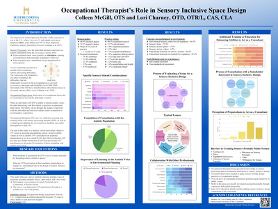 The rise in individuals experiencing sensory processing difficulties has revealed the challenges they face in regard to engagement in different environments and social participation. Sensory processing difficulties can impact the individual's social connectedness to entertainment venues that confine larger crowds and overwhelming stimuli, causing a form of occupational deprivation. This form of occupational deprivation can not only affect the individual, but can also impact family interactions at social events. Occupational therapists have proven highly skilled when assessing and treating clients with sensory processing difficulties, as well as evaluating and adapting environments to promote successful participation. With that, there is a pressing need to identify occupational therapists' perceptions of academic preparedness to act as a consultant in creating sensory friendly spaces along with determining methods of assessment and design planning used. Through the use of a survey, researchers seek to accumulate information from practitioners to further their roles as advocates for inclusivity.